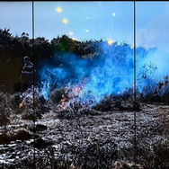 What happens when a visual artist nearly loses their sight? Shock. A shapeless void. Cataracts causing hazy vision, detached retina, black clouds, swirling floaters, flashes like an old movie, all happening suddenly. No warning. Two eyes in one body giving a different view and feeding different information to the brain. The brain attempts to catch up with the changes and make sense of the new way of seeing the world. Hallucinations...when our eyes lie to us. How do we respond when what we believe is fundamental to our identity is under threat? When does a setback become a gift? Setting out to consider these questions, the experience of seeing and not seeing becomes the central story of Thick Smoke. This Spud experimental exhibition has provided an opportunity to share the experience of making work through this significant period. This is the second collaboration by Barbara J Graham and Will S Woods, who began working together in 2024 after meeting at ‘a space’, Arches Studios in Southampton. Barbara has recently received an Arts Council Grant to further develop her practice, and Will is completing an MA in curating. For Thick Smoke, Barbara paints on natural and artificial surfaces to unpack how the world can be simultaneously in and out of focus. In response, Will’s film and soundscape echo the visual and psychological themes of these works. Barbara reflects: 'In February 2024, the retina in my right eye became detached without warning, and my vision was permanently changed. Since then, I've had two surgeries and months of convalescence during which my eye has at times been bionically powerful, totally blind, or more often somewhere in between. Consistency is lost, colours change; different focal ranges in each eye create a vision that is simultaneously sharp and blurred. I have flashes and floaters, ocular migraines, blind spots, double vision, and hallucinations: a constant mix of what I see in the world and what I see within my eye. My painting practice must now adapt daily to my ever-changing eyesight. Yesterday's work looks different today; seeing close-up or from a distance only provides a partial picture. To deal with this, I've created a studio space crammed with canvases on every surface, which I work on simultaneously, so there's always something I can see that feels okay. Nothing is stable; nothing is finished. My eye will require more surgery soon, and the paintings, like my eyesight, will continue to change.'